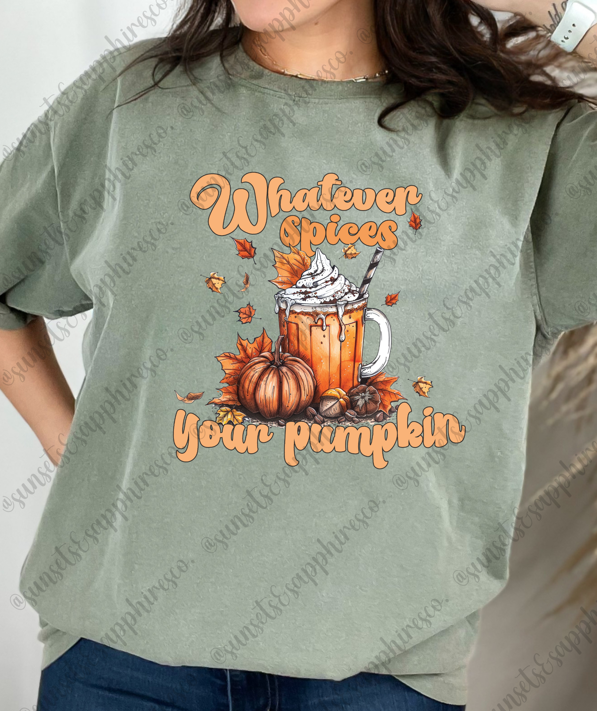 Spread the joy of fall with our Whatever Spices Your Pumpkin T-Shirt. Made with 100% ringspun cotton, the preshrunk and soft-washed fabric ensures ultimate comfort. Perfect for pumpkin spice lovers, this shirt is the perfect addition to your fall style. Bring on the cozy and spice up your wardrobe!